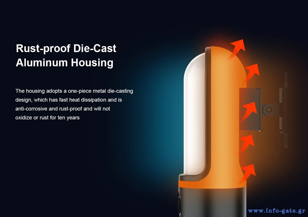 Μπορεί να ανιχνεύσει την ανθρώπινη σιλουέτα και κίνηση, στέλνοντας ειδοποιήσεις στο smartphone σας κάθε φορά που ανιχνεύεται κίνηση αλλά και να ενεργοποιήσει ηχητικό και οπτικό (με φως) συναγερμό.