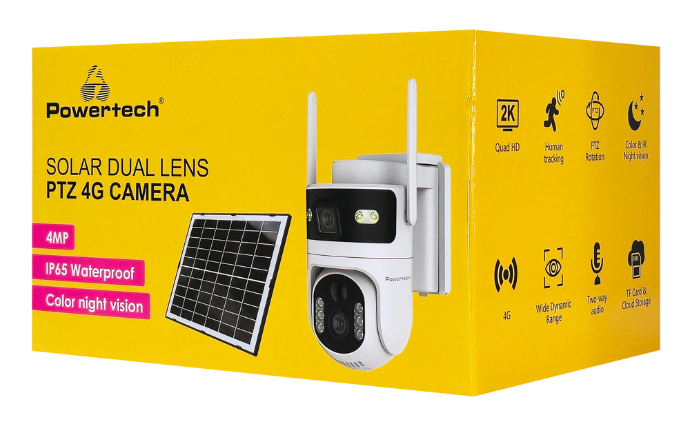 POWERTECH smart ηλιακή κάμερα PT-1547, dual lens, 4MP, 4G, PTZ, SD, IP65