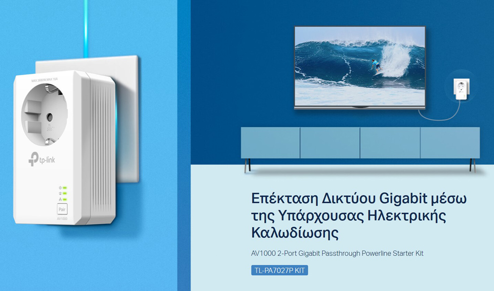 TP-LINK powerline kit TL-PA7027P KIT, passthrough, AV1000 1000Mbps, V1.0