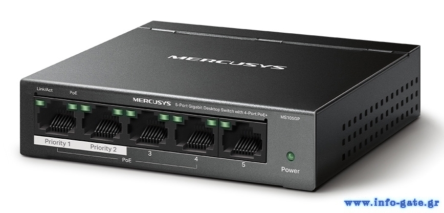 MERCUSYS Desktop Switch MS105GP, 5x 10/100/1000 Mbps, PoE+, Ver. 1.0