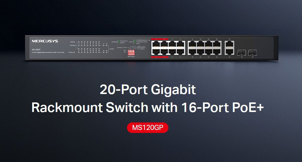 MERCUSYS rackmount switch MS120GP, 20x Gigabit θύρες, PoE+, V1.0