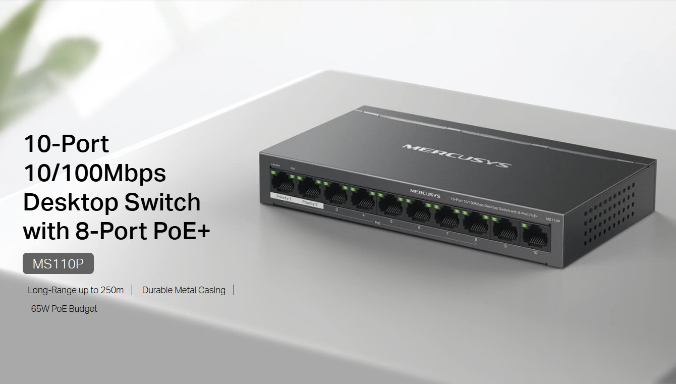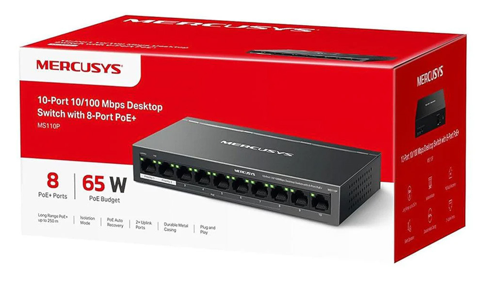 Το desktop switch της Mercusys σας επιτρέπει να επεκτείνετε το ενσύρματο δίκτυο σας με 10x 10/100Mbps θύρες, εκ των οποίων οι 8x υποστηρίζουν PoE+.
