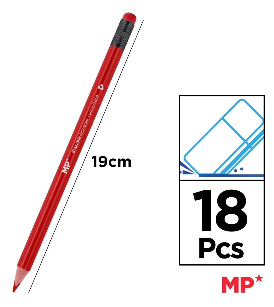 Σετ χρωματιστών ξυλομπογιών της MP σε 18 αποχρώσεις, με ανθεκτική μύτη και εξαιρετική χρωματική απόδοση. Στο επάνω μέρος τους διαθέτουν γόμα, για άμεσο σβήσιμο.