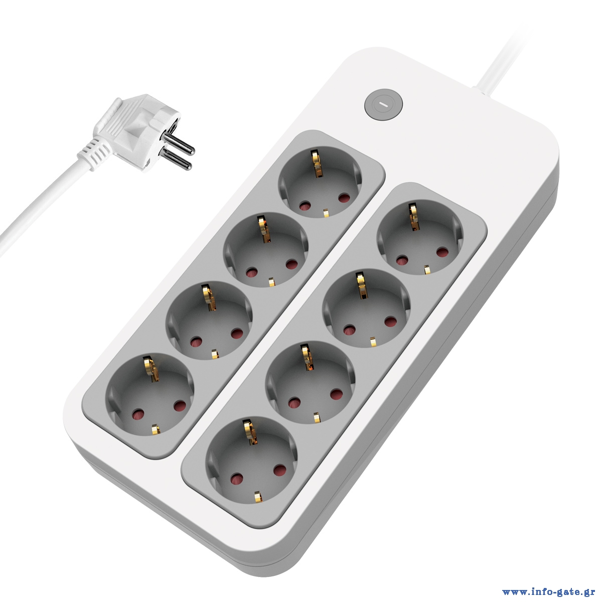 POWERTECH πολύπριζο ασφαλείας PT-1534, 8 θέσεων, 16A, 1.5m, λευκό