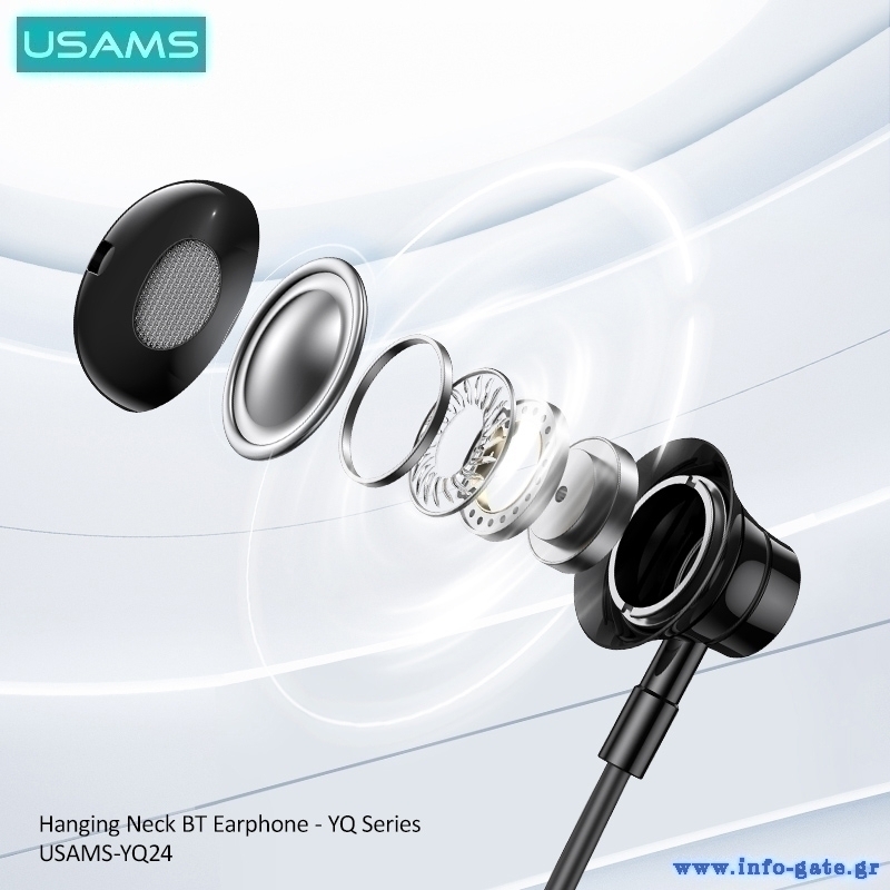 USAMS earphones YQ24 με μαγνήτη, Bluetooth, 130mAh, μαύρα
