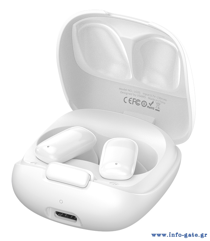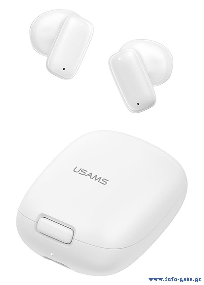 USAMS earphones με θήκη φόρτισης ID25, TWS, Φ13mm, 30/230mAh, λευκά