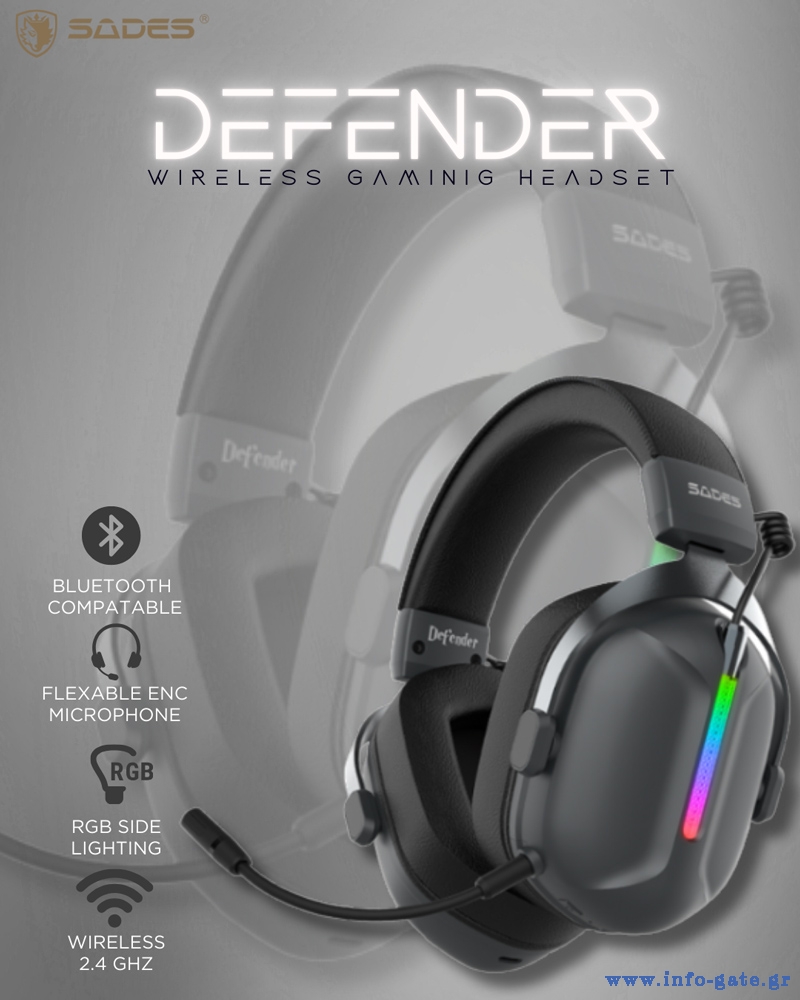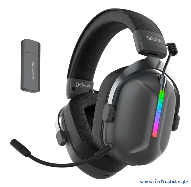 SADES gaming headset Defender, ασύρματα & ενσύρματα, 50mm, 1050mAh, RGB, multi-platform, μαύρο