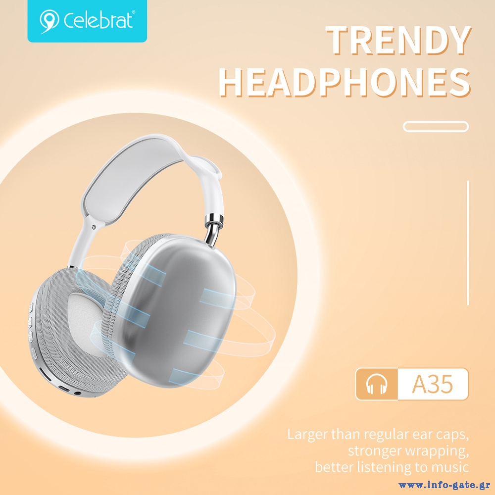 CELEBRAT headphones A35, ασύρματα & ενσύρματα, micro SD, 40mm, 200mAh, μαύρα