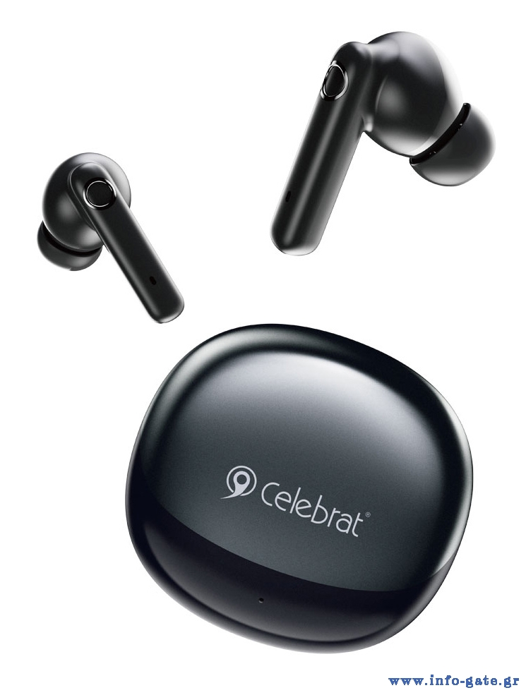 CELEBRAT earphones με θήκη φόρτισης W71, True Wireless, 10mm, 30/200mAh, μαύρα