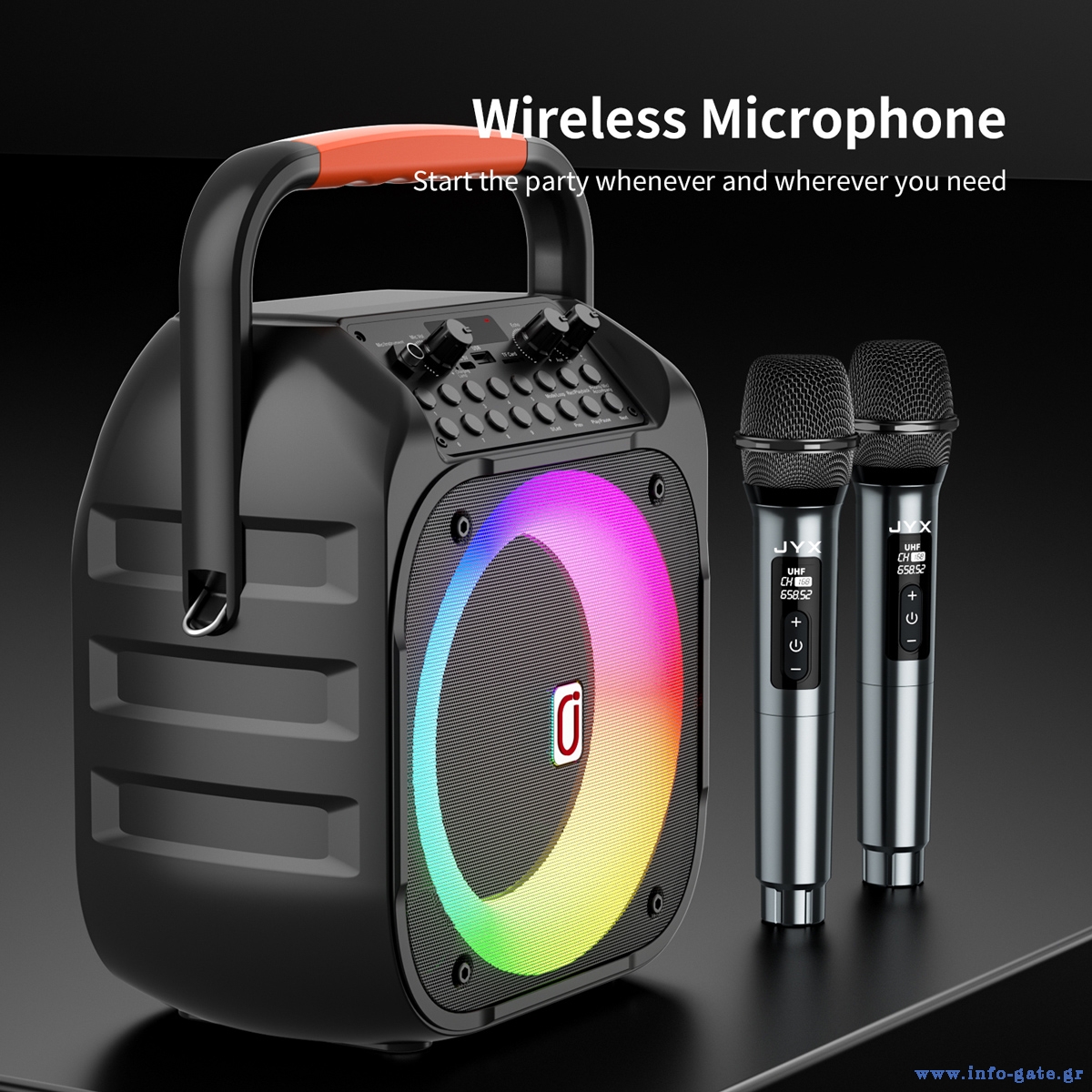 Ασύρματο φορητό ηχείο της JYX με 2x ασύρματα μικρόφωνα για να μετατρέψετε τις συναντήσεις με τους φίλους σας, σε ένα διασκεδαστικό karaoke party.