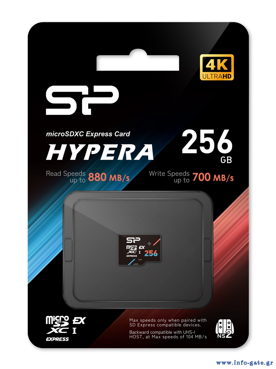 SILICON POWER κάρτα μνήμης microSDXC Express Hypera, 256GB, PCIe Gen 3x1, C10 UHS-I U3 A1 V30
