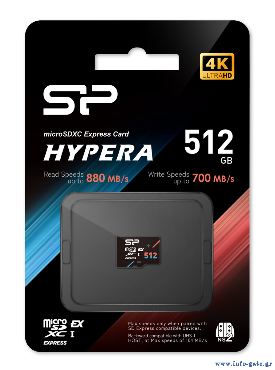 SILICON POWER κάρτα μνήμης microSDXC Express Hypera, 512GB, PCIe Gen 3x1, C10 UHS-I U3 A1 V30