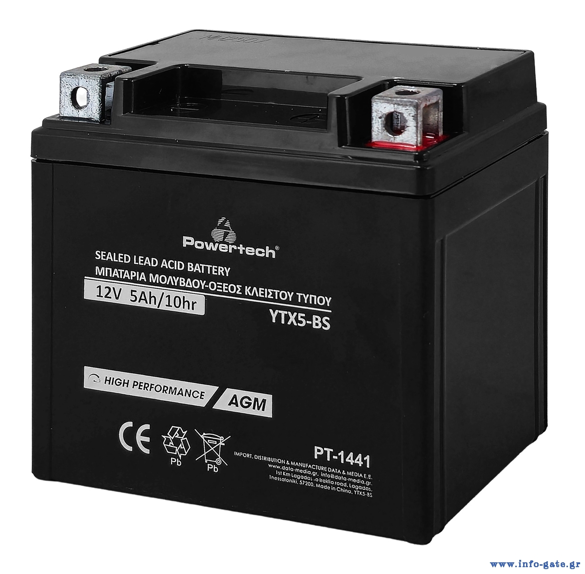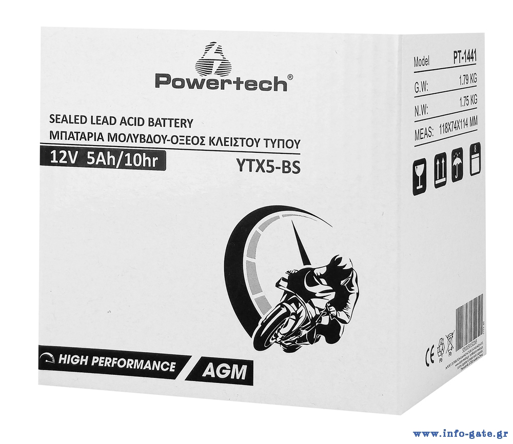 POWERTECH μπαταρία μολύβδου μοτοσυκλέτας PT-1441, 12V 5Ah, AGM, YTX5-BS