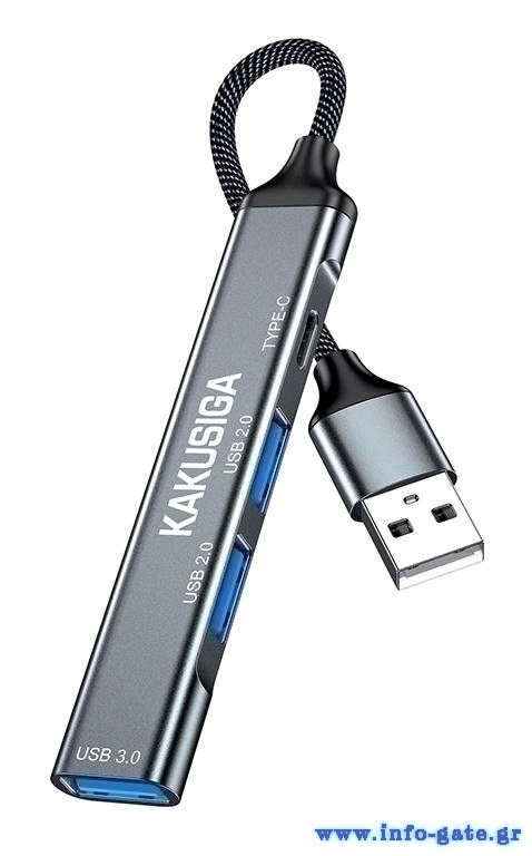 Αυτό το hub της KAKUSIGA μπορεί να συνδεθεί με το laptop ή το desktop σας μέσω θύρας USB και να επεκτείνει τις θύρες του με 1x USB-C και 3x USB θύρες. Διαφορετικές συσκευές USB, όπως εξωτερικοί σκληροί δίσκοι, card readers, ποντίκια κλπ. μπορούν να συνδεθούν μέσω του hub.