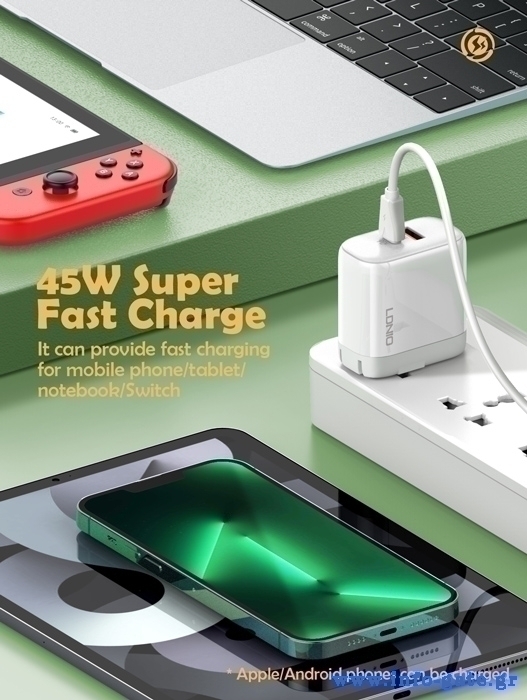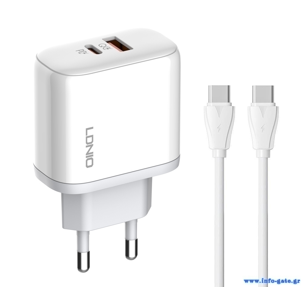 LDNIO φορτιστής τοίχου A2526C με καλώδιο, USB & USB-C, 45W PD, λευκός