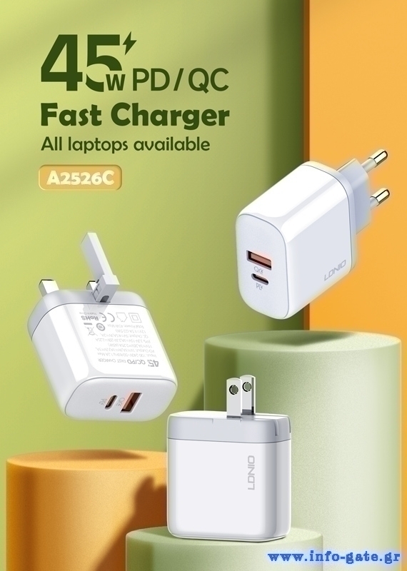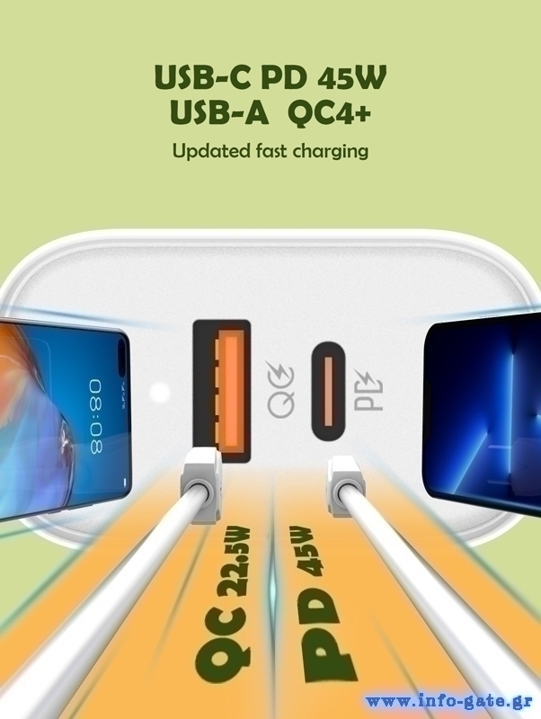 -2x θύρες εξόδου, USB & USB-C, με μέγιστη απόδοση 45W