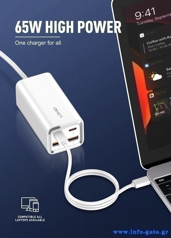 -2x USB & 2x USB-C θύρες εξόδου, με μέγιστη απόδοση 65W
