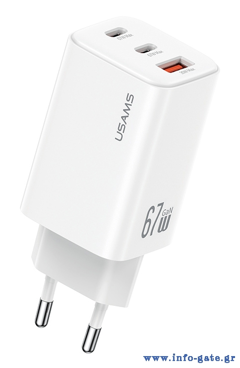 USAMS φορτιστής τοίχου CC265, USB & 2x USB-C, 67W, GaN, λευκός