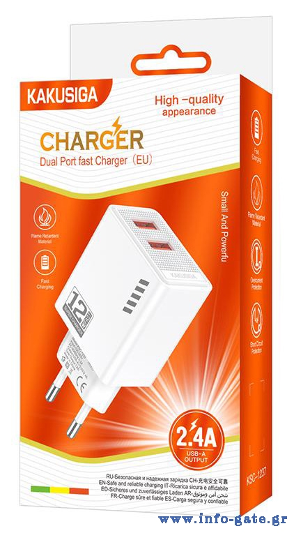 KAKUSIGA φορτιστής τοίχου KSC-1237, 2x USB, 12W, λευκός