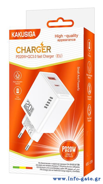 KAKUSIGA φορτιστής τοίχου KSC-1239, USB & USB-C, 20W, λευκός