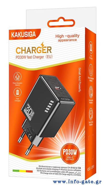 KAKUSIGA φορτιστής τοίχου KSC-1241, USB-C, 30W, μαύρος