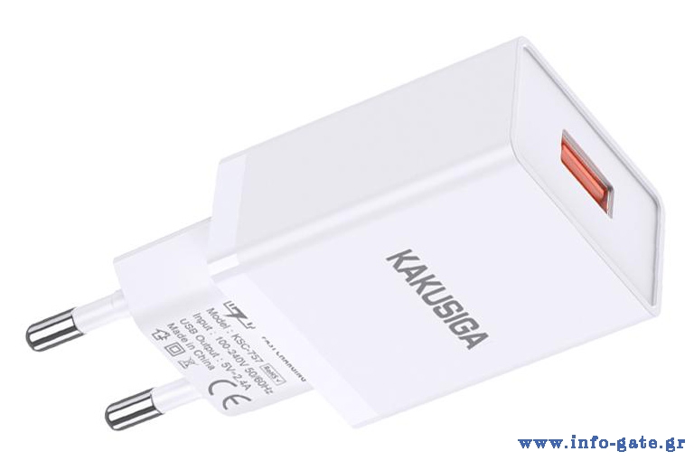 Υψηλής απόδοσης φορτιστής τοίχου της KAKUSIGA, κατασκευασμένος από ανθεκτικό υλικό και συμβατός με συσκευές που φορτίζουν μέσω θύρας USB.