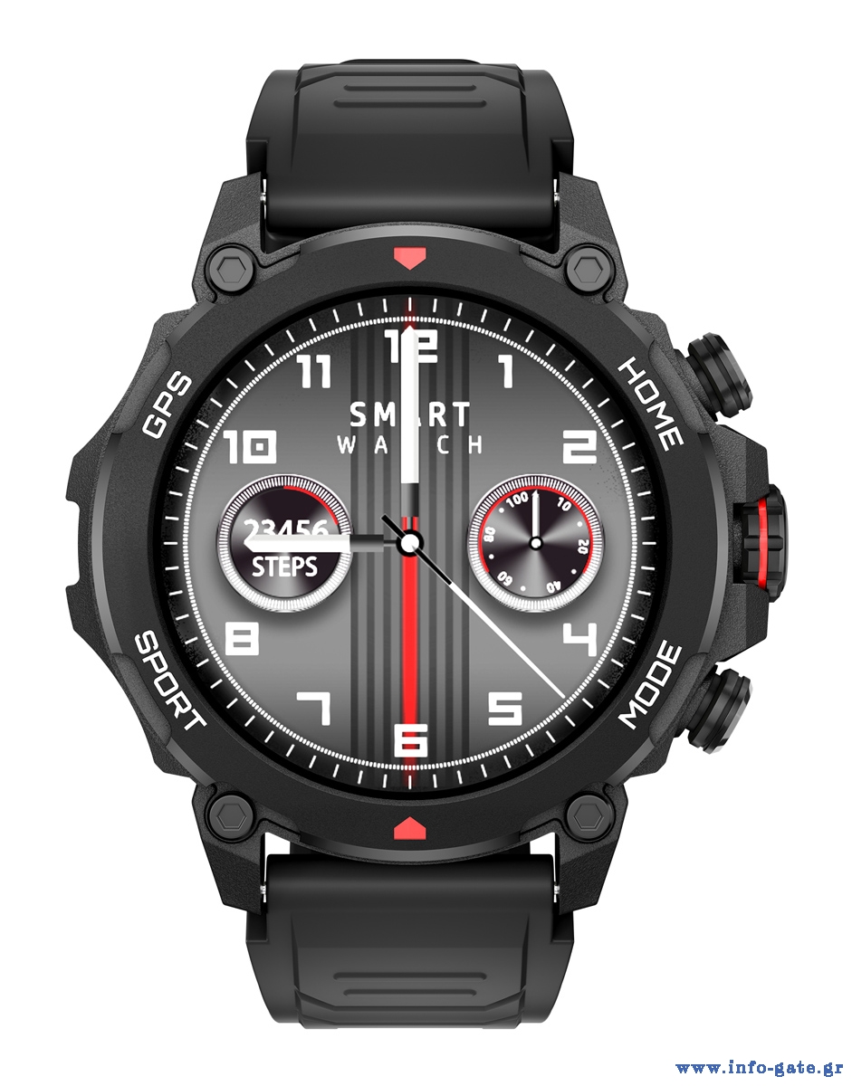 INTIME smartwatch G6 με 2x λουράκια, heart rate, 1.43" AMOLED, GPS, 5ATM, titanium black