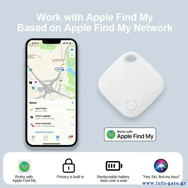 Είναι συμβατό με iOS συσκευές και λειτουργεί με την εφαρμογή Apple Find My.