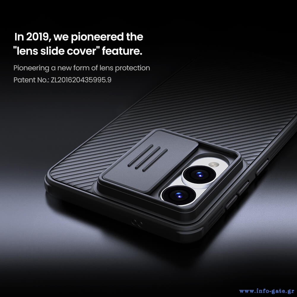 Η θήκη της σειράς CamShield Pro της Nillkin χαρακτηρίζεται από την ενισχυμένη προστασία που προσφέρει, το σκληρό υλικό κατασκευής της με την ανάγλυφη επιφάνεια, αλλά και την έξτρα προστασία των καμερών και της ιδιωτικότητας σας, χάρη στο συρόμενο καπάκι της.