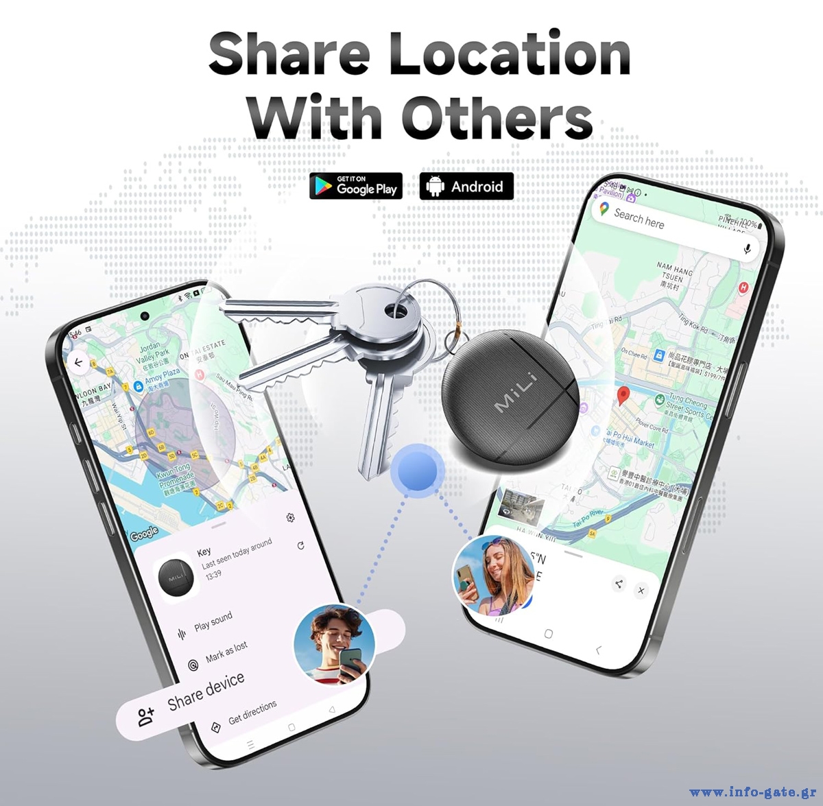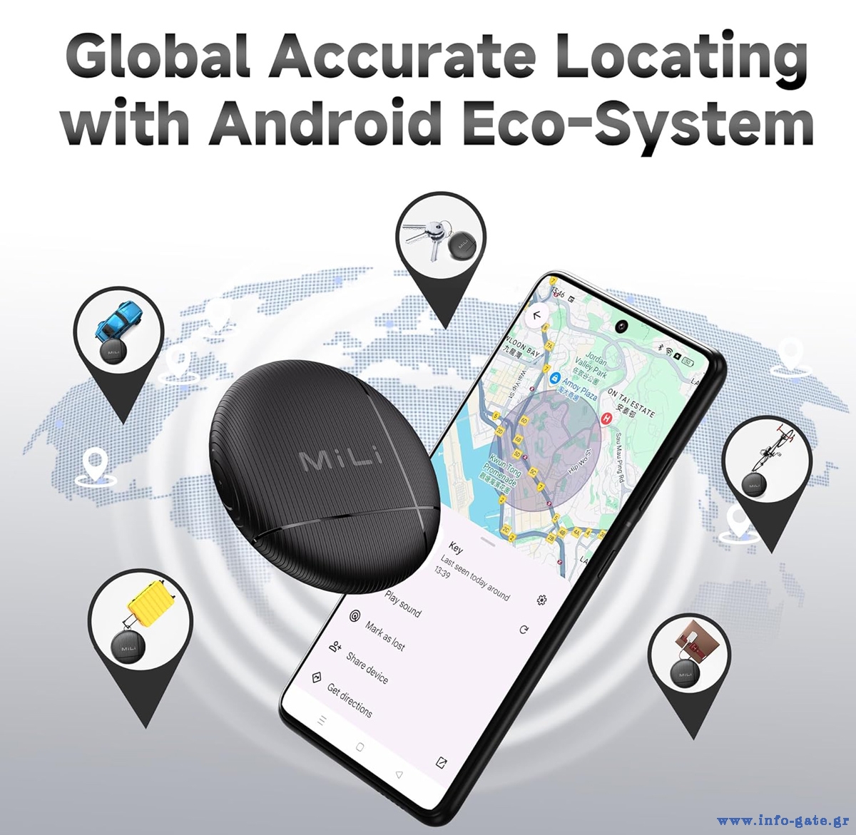 Είναι συμβατό με iOS και Android συσκευές και λειτουργεί με την εφαρμογή Apple Find My και Google Find My Device.