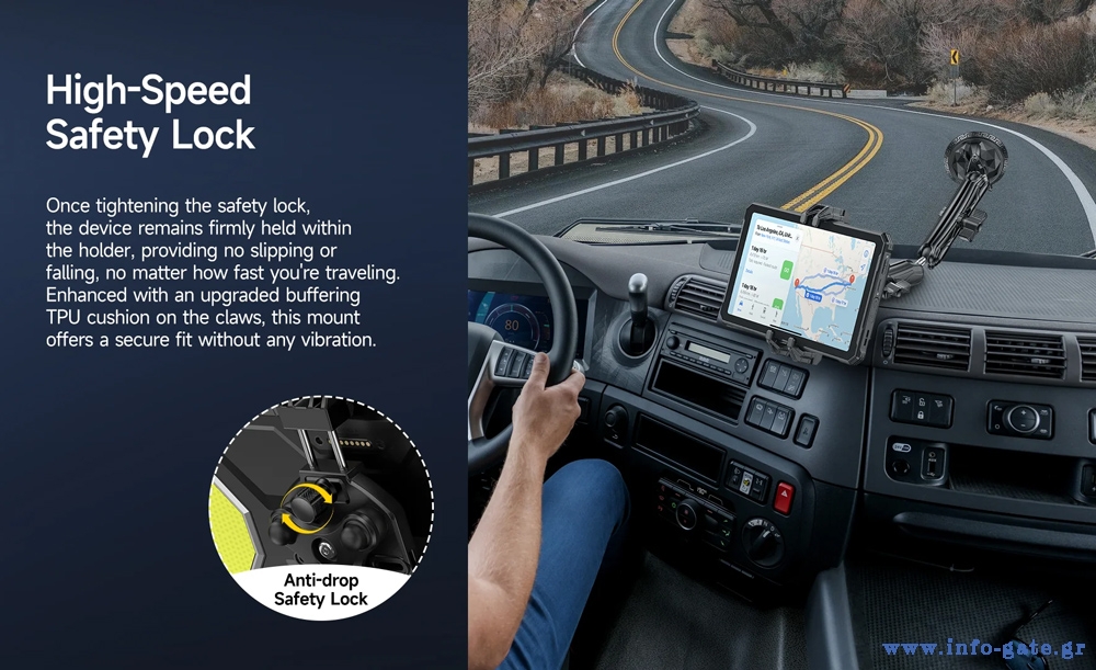 Συγκρατεί ιδιαίτερα σταθερά το tablet και προσφέρει εύκολη χρήση, χωρίς να αποσπά την προσοχή σας από την οδήγηση.