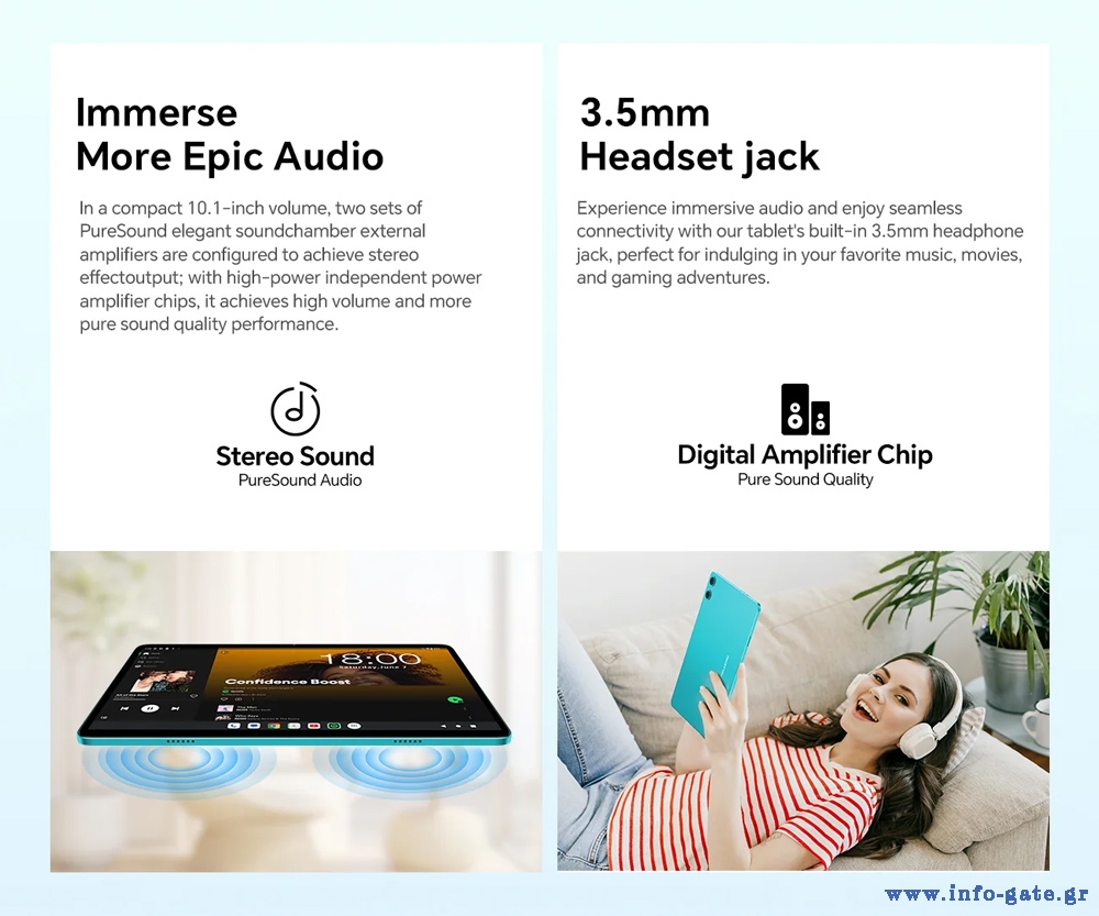 Με 3GB (+6GB virtual) RAM και 64GB ROM για να αποθηκεύετε τα αγαπημένα σας αρχεία, φωτογραφίες και βίντεο. Επιπλέον, προσφέρει την δυνατότητα να επεκτείνετε τον χώρο αποθήκευσης του tablet με κάρτα micro SD έως 1TB.