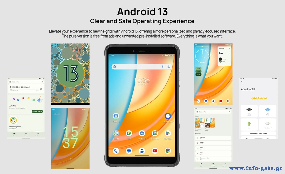 Εξοπλισμένο με επεξεργαστή 8 πυρήνων και λειτουργικό Android 13, το Armor Pad Pro προσφέρει υψηλή απόδοση για απρόσκοπτη περιήγηση στο διαδίκτυο, παιχνίδια, πολυμέσα και πολλά άλλα.