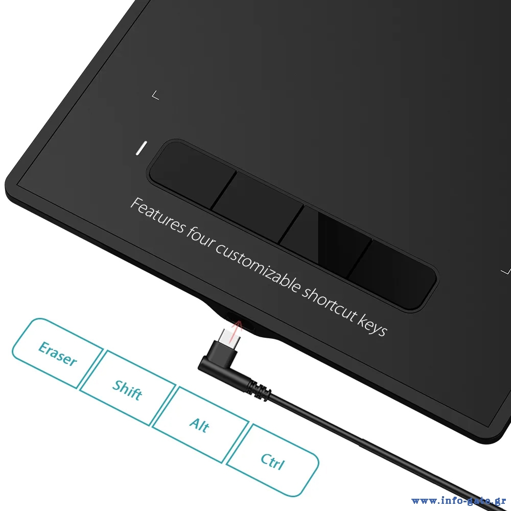 Η σύνδεση του με desktop, laptop, tablet ή smartphone γίνεται μέσω καλωδίου USB, ενώ, στη συσκευασία συμπεριλαμβάνεται γραφίδα η οποία λειτουργεί χωρίς μπαταρία.