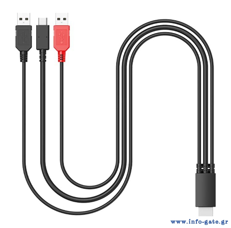 Καλώδιο 3 σε 1 από HDMI σε USB-C και 2x USB, κατάλληλο για την σύνδεση ταμπλετών σχεδίασης της XP-PEN με desktop ή laptop.