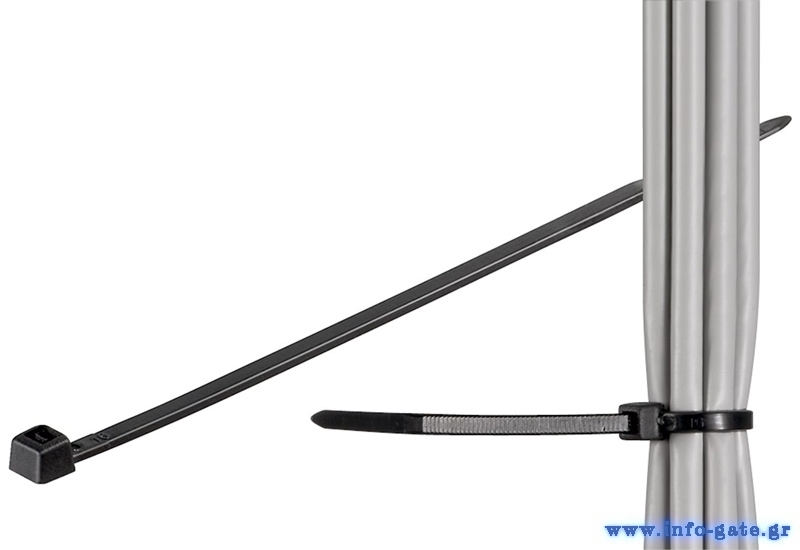 Δεματικά καλωδίων της Goobay με αυτόματο μηχανισμό κλεισίματος, ανθεκτικά σε UV ακτινοβολία και νερό. Η συσκευασία περιλαμβάνει 100 δεματικά καλωδίων.