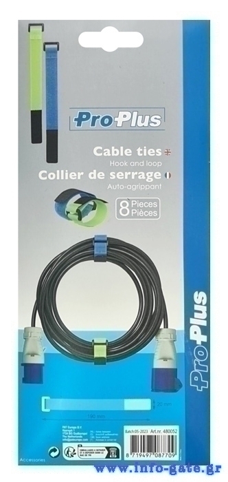 PROPLUS ιμάντες τύπου velcro 480052, 19x2cm, μπλε & πράσινο, 8τμχ