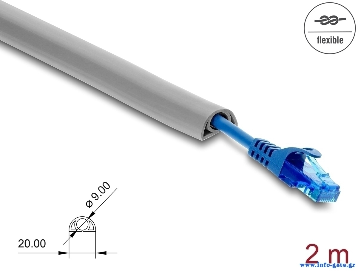 DELOCK κανάλι καλωδίων 20765 με αυτοκόλλητο, εύκαμπτο PVC, 20x10mm, 2m, γκρι