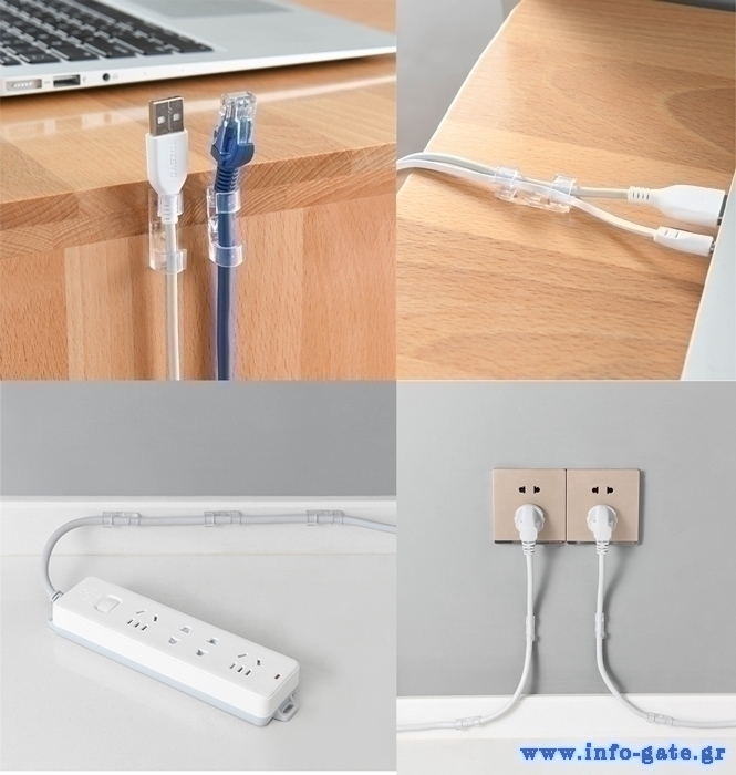 Οργανωτής καλωδίων με αυτοκόλλητη βάση της Powertech. Επιτρέπει την εύκολη τακτοποίηση των καλωδίων όπως USB ή τροφοδοσίας και μπορεί εύκολα να τοποθετηθεί σε οποιαδήποτε λεία επιφάνεια, όπως ένα γραφείο ή έναν τοίχο.
