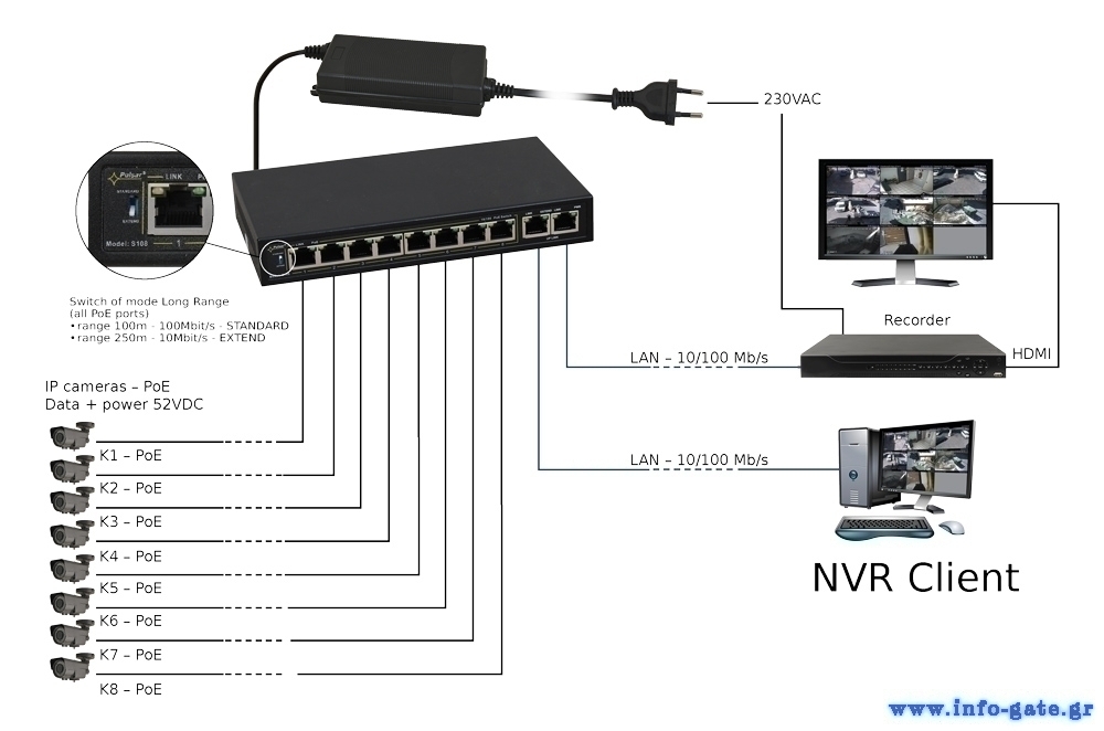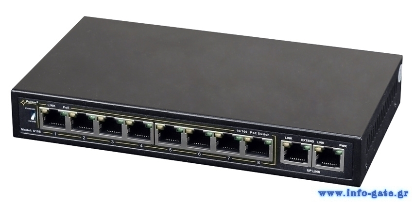 PULSAR PoE Ethernet Switch S108-90W, 10x ports 10/100Mb/s