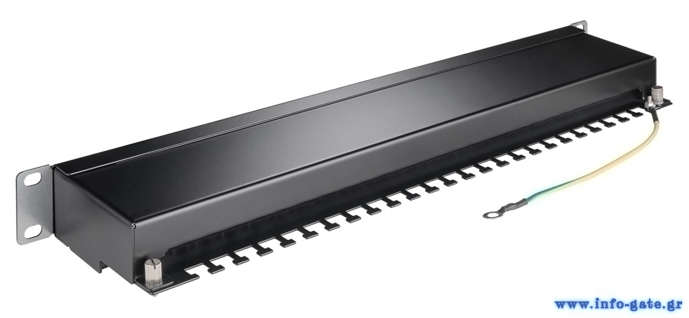 Patch panel της Goobay για τοποθέτηση σε καμπίνα δικτύου 19". Μπορούν να εγκατασταθούν έως και 24 καλώδια δικτύου.