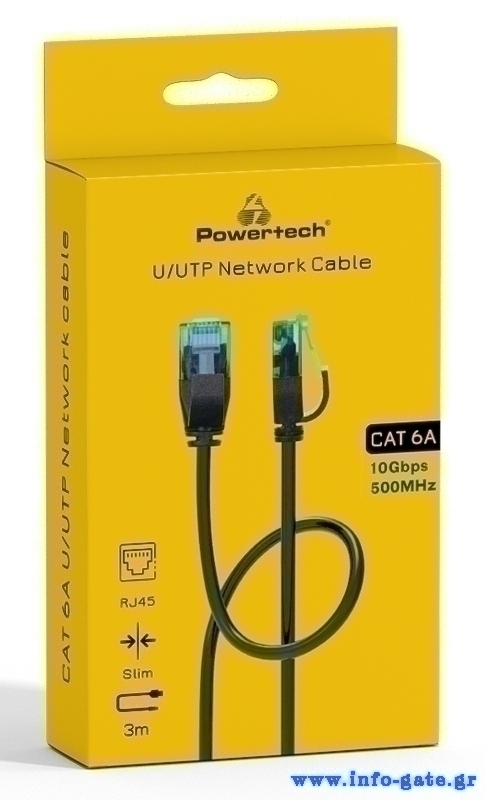 POWERTECH καλώδιο δικτύου PTR-0144 Cat 6a U/UTP, copper, slim, 3m, μαύρο