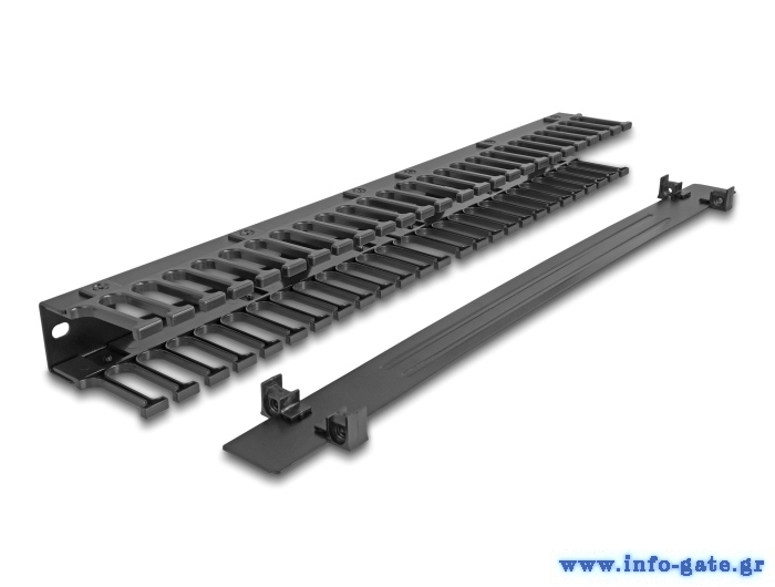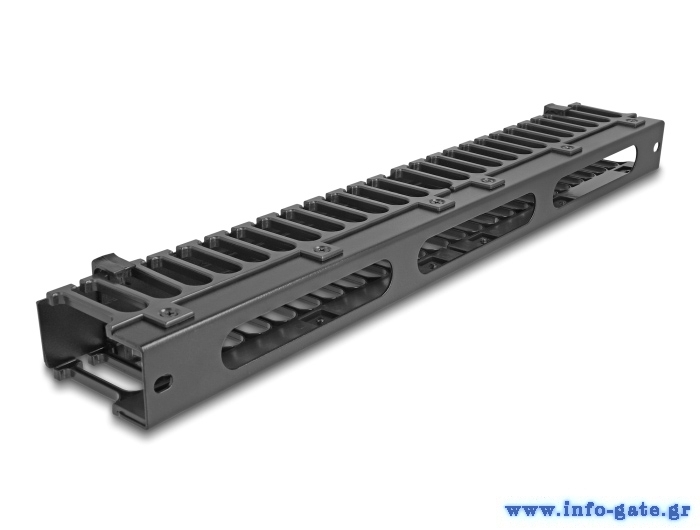 DELOCK cable management 67022 για rack 19"/1U, 3 ανοίγματα, μεταλλικό/πλαστικό, μαύρο