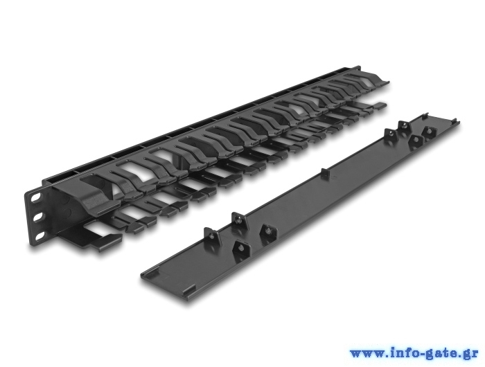 DELOCK cable management 67021 για rack 19"/1U, 2 ανοίγματα, πλαστικό, μαύρο