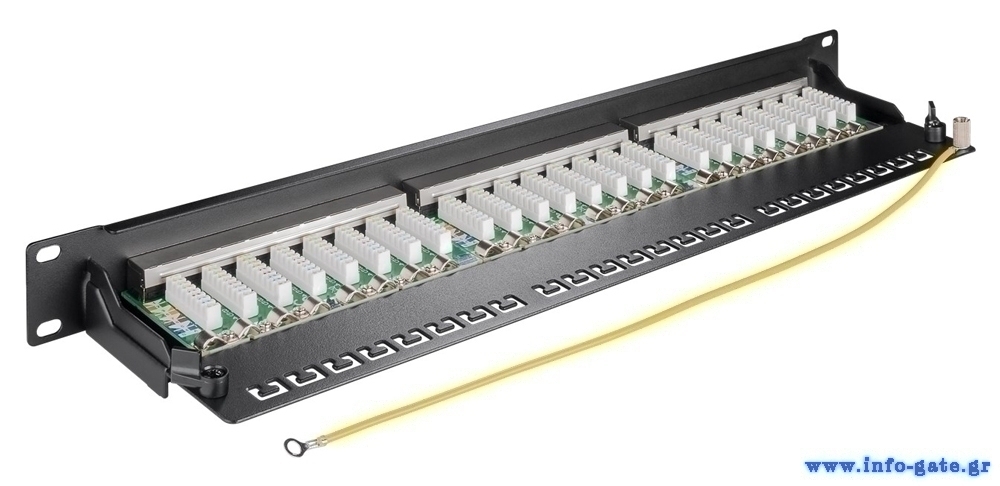 Patch panel της Goobay για τοποθέτηση σε καμπίνα δικτύου 19". Μπορούν να εγκατασταθούν έως και 24 καλώδια δικτύου.