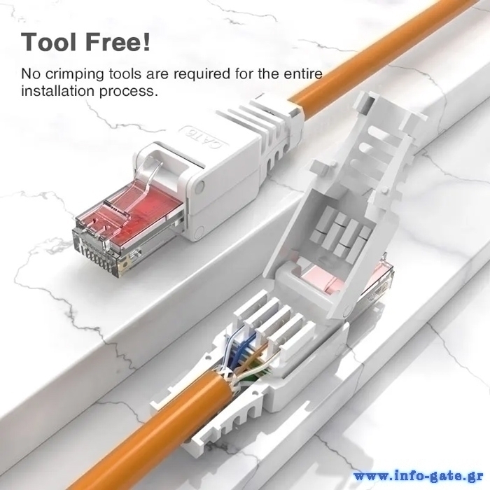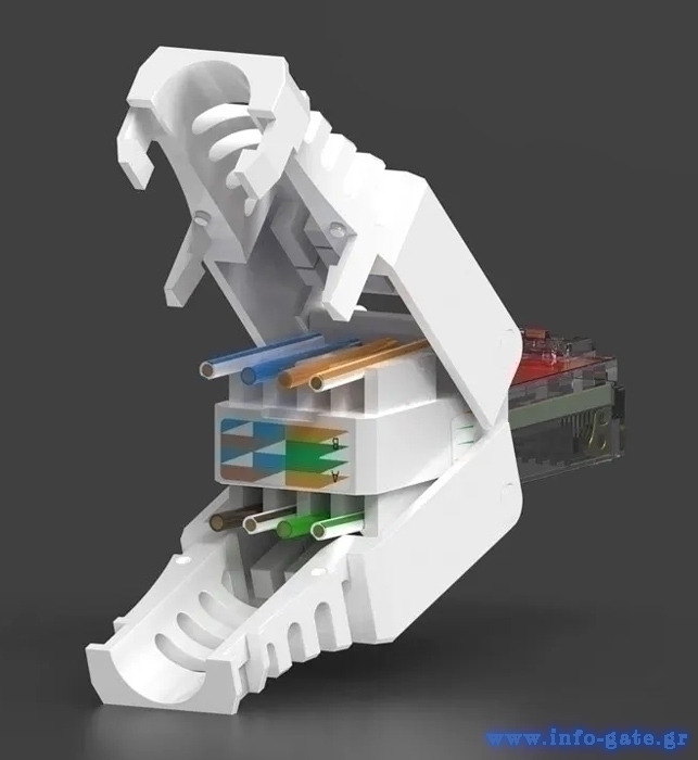 Βύσμα RJ45 της Powertech για εύκολη εγκατάσταση σε καλώδια δικτύου, χωρίς την χρήση εργαλείων.