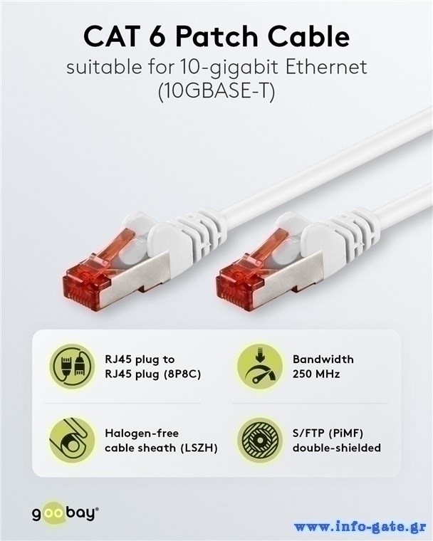 GOOBAY καλώδιο δικτύου 92462, CAT 6 S/FTP, copper, 250MHz, 0.15m, λευκό