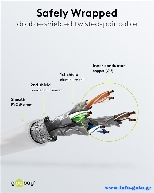 Τα καλώδια δικτύου της Goobay κατασκευάζονται από ποιοτικά υλικά, με τις υψηλότερες τεχνικές προδιαγραφές, προσφέροντας αξιόπιστη λειτουργία υψηλής απόδοσης, με αντοχή στον χρόνο.
