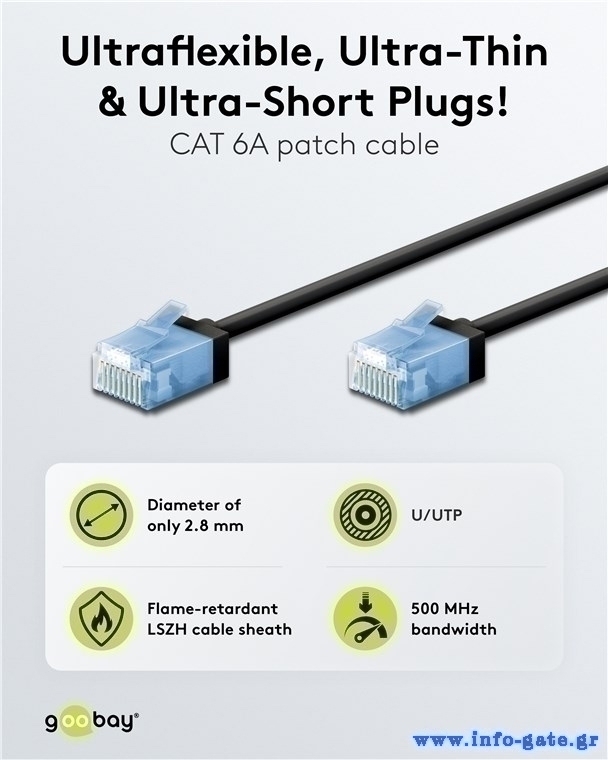 GOOBAY καλώδιο δικτύου 74232, CAT 6A U/UTP, ultra slim, copper, 500MHz, 0.50m, μαύρο