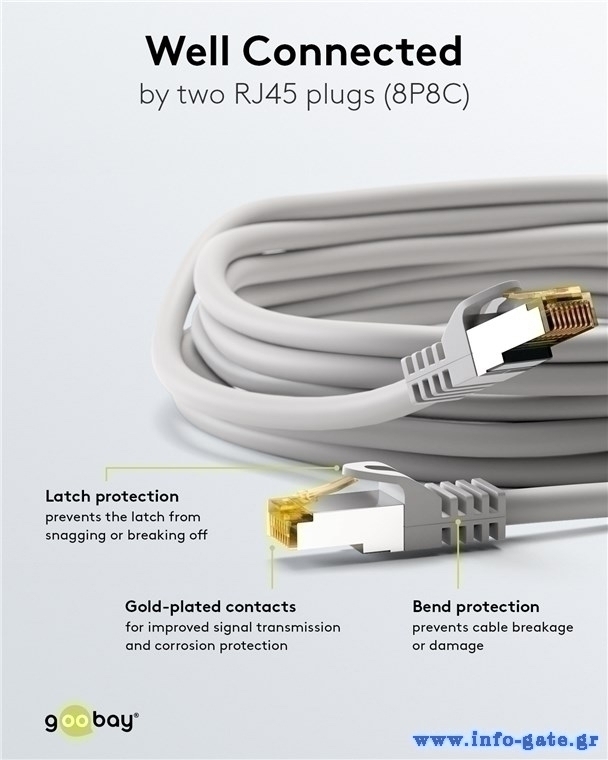 Τα καλώδια δικτύου της Goobay κατασκευάζονται από ποιοτικά υλικά, με τις υψηλότερες τεχνικές προδιαγραφές, προσφέροντας αξιόπιστη λειτουργία υψηλής απόδοσης, με αντοχή στον χρόνο.